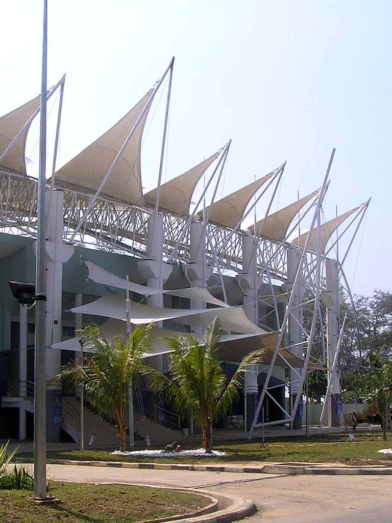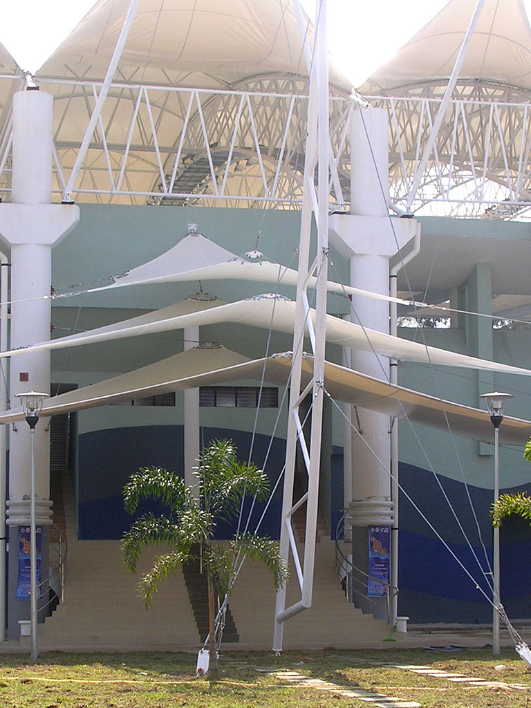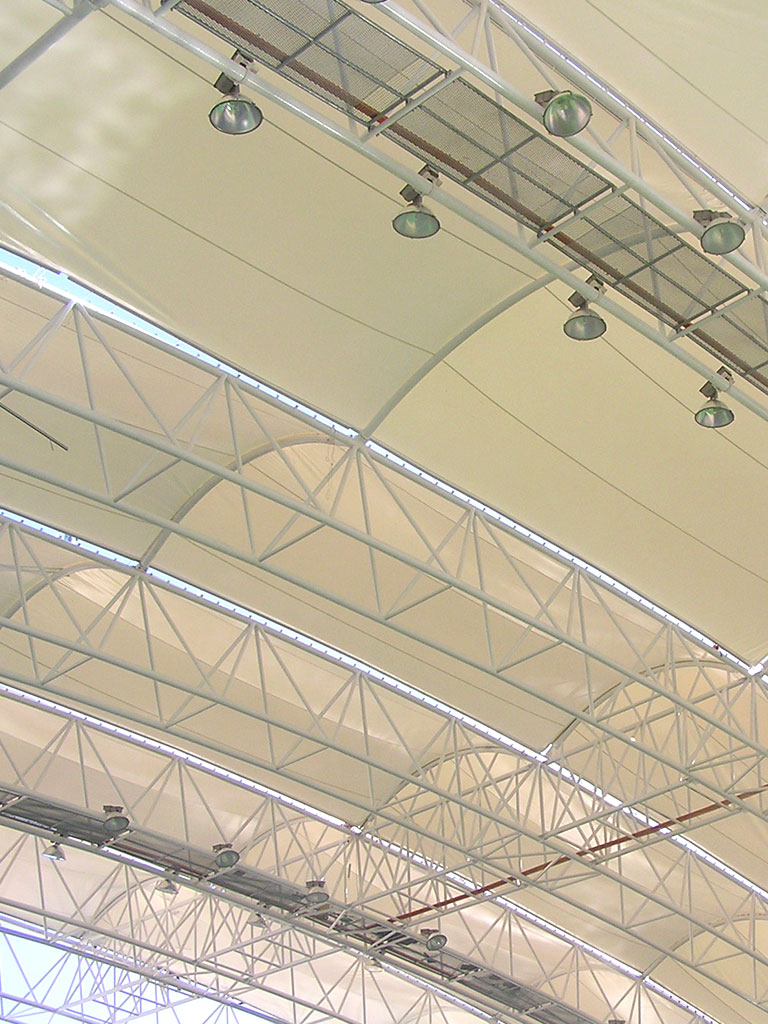 Design, supply, fabricate and install the tensile fabric roof system including its imposing steel trusses.