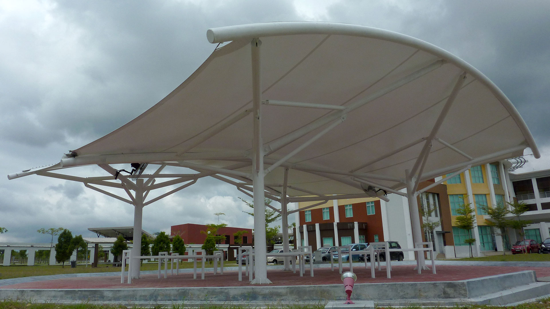 Catonic (M) Sdn. Bhd. was engaged to design, supply, fabricate and install tensile membrane structures at both the Original Main Campus as well as the new campus at Proton City. The purpose of these structures is to provide shade and space for multiple uses especially during the convocation period as well as to enhance the landscape of the university. Three different structures were successfully design and installed for the project.